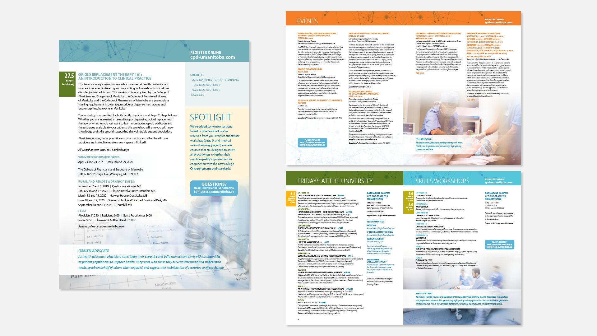 Inside spreads. Each workshop is colour co-ordinated with the schedule at the back of the brochure.