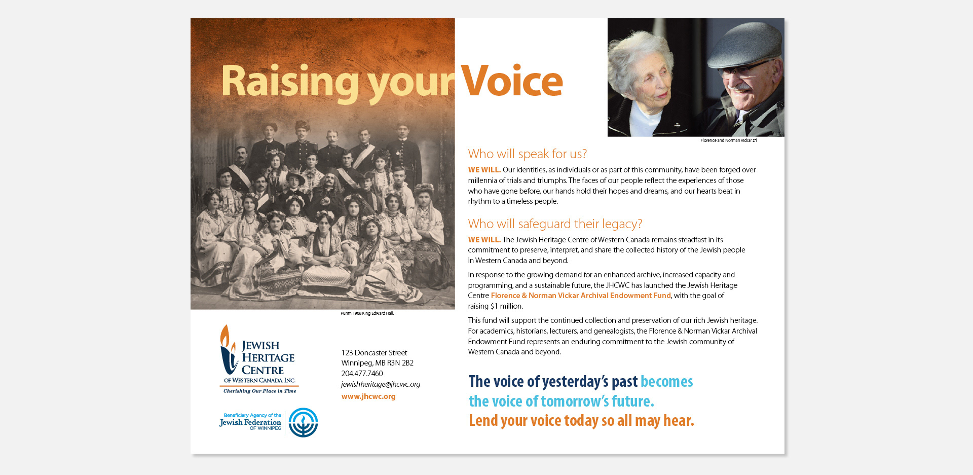 For over a half-century the voices of the Jewish people have been carefully gathered to create a rich tapestry that preserves our heritage. The Jewish Heritage Centre of Western Canada (JHCWC) is at the forefront of preserving and presenting the religious and cultural heritage of the Jewish Community of Western Canada.