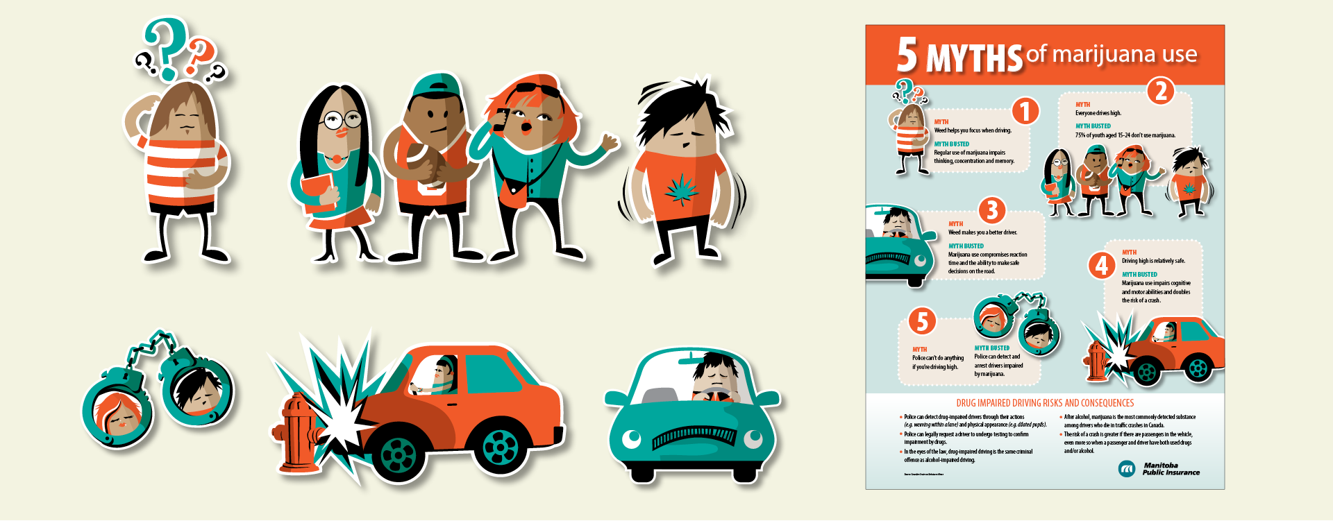 Teen characters created for an impaired driving poster. Client - Manitoba Public Insurance